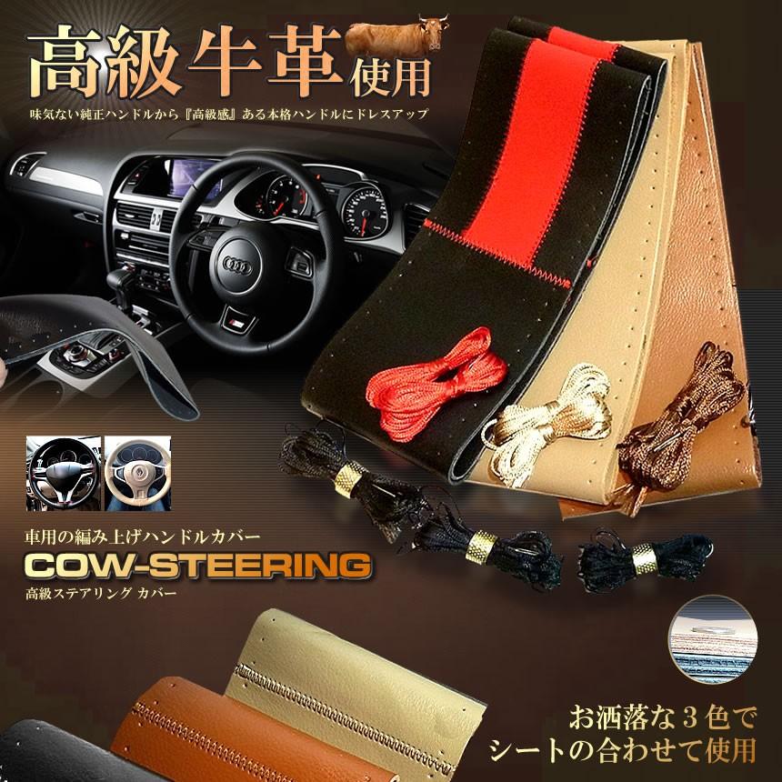 楽天市場 車用 高級牛革 ステアリング カバー 編み上げ ハンドル カバー 38cm ベージュ ブラウン ブラック 内装 おしゃれ 便利 Cowcove Shop Kurano